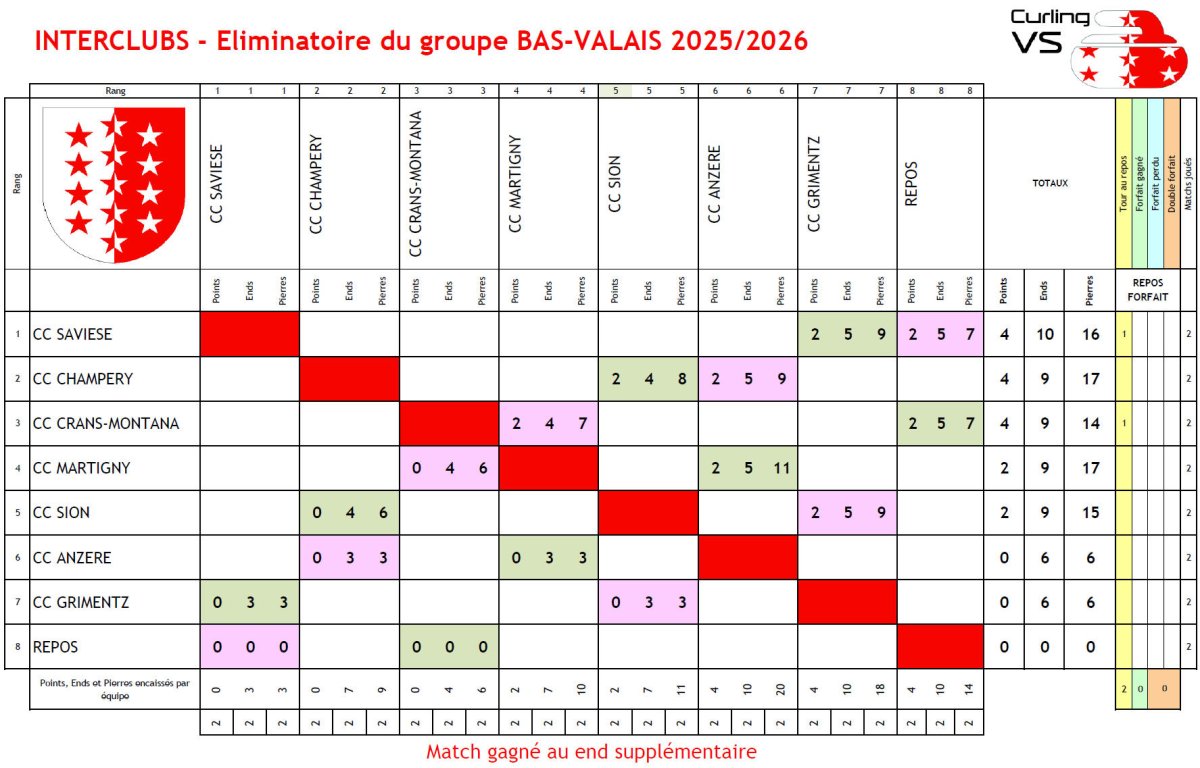 Au classement le CC SAVIESE et LE CC CRANS-MONTANA mènent le bal avec 6 points (2 victoires + 2 points du tour de repos)